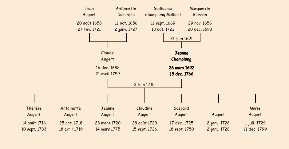 Mariée (23 ans) avec Claude Augert (26 ans) le 3 juin 1715 à Fontcouverte ![]() |