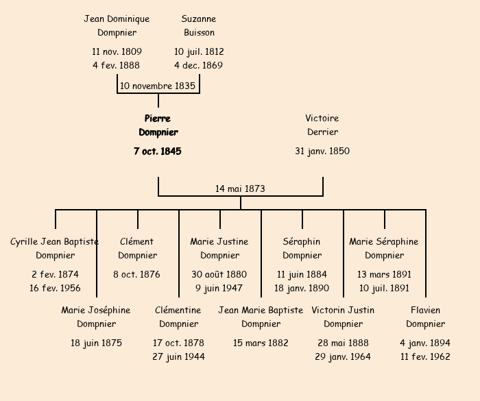 Marié (27 ans) avec Victoire Derrier (23 ans) le 14 mai 1873 à Saint-Pancrace |