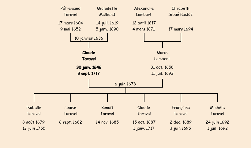 Claude Taravel apparait dans le recensement de la population de 1716. |
