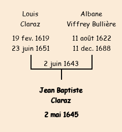 Père : Louis Claraz, fils de Jean | Parrain : Jean Baptiste Claraz (fils du même Jean) |
