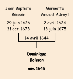Père : Jean Baptiste Boisson | Parrain : Pierre Boisson (fils de Colomban) |
