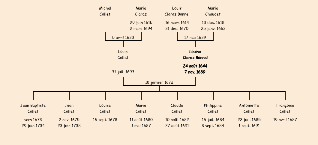 Mariée (27 ans) avec Louis Collet le 18 janvier 1672 à Fontcouverte ![]() |