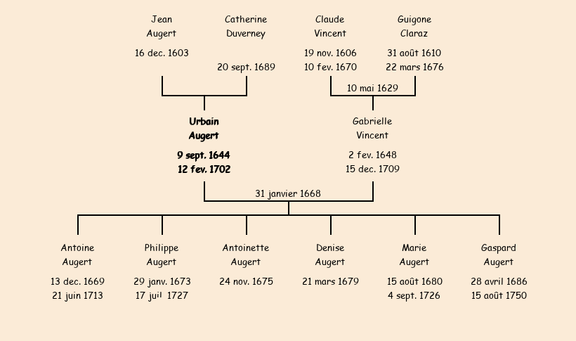 Père : Jean Augert | Parrain : Urbain Duverney (révérend chanoine de l'église cathédrale de Saint Jean de Maurienne) |