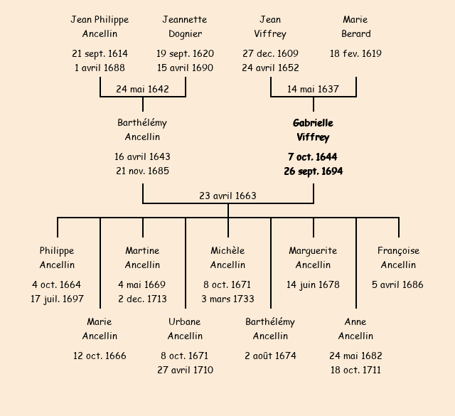 Mariée (18 ans) avec Barthélémy Ancellin (20 ans) le 23 avril 1663 à Saint-Jean-de-Maurienne |