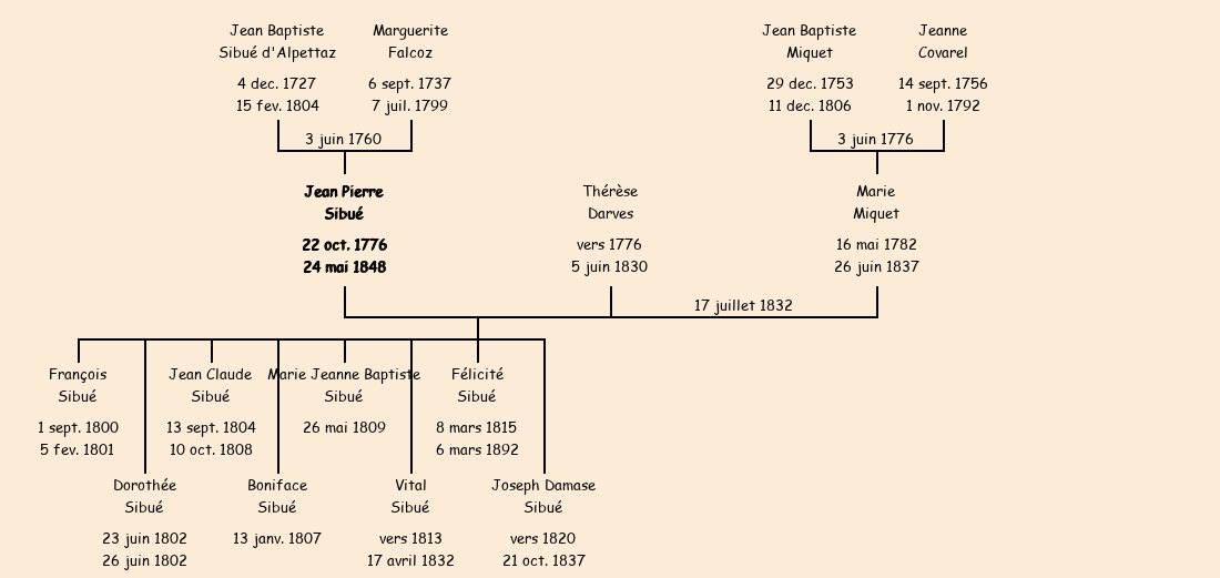 Epoux : Jean Pierre Sibué (veuf de Thérèse Darves), fils de feu Jean Baptiste et de feue Marguerite Falcoz |