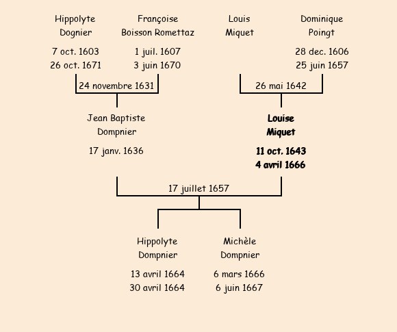 Mariée (13 ans) avec Jean Baptiste Dompnier (21 ans) le 17 juillet 1657 à Fontcouverte ![]() |