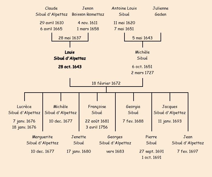 Louis Sibué d'Alpettaz apparait dans la consigne des mâles de 1713 (absent). |