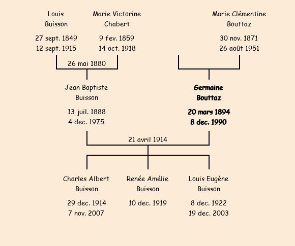 Epouse : Germaine Bouttaz (née à Fontcouverte le 20 mars1894), fille de Marie Clémentine Bouttaz (du Chef Lieu) |