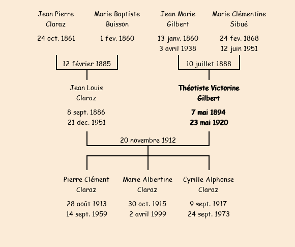 Mariée (18 ans) avec Jean Louis Claraz (26 ans) le 20 novembre 1912 à Fontcouverte |