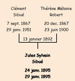 Père : Clément Sibué (28 ans culitvateur à La Bise) |