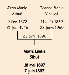 Père : Jean Marie Sibué (25 ans né et domicilié à La Bise, cultivateur) |