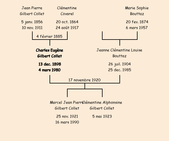 Epoux : Charles Eugène Gilbert Collet (21 ans, né à Fontcouverte le 13 décembre1898, domicilié à La Rochette), fils de feu Jean Pierre et de feue Marie Clémentine Covarel |