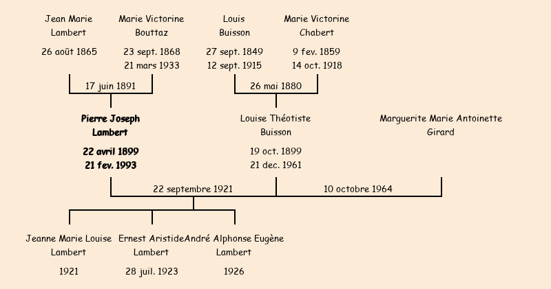Epoux : Pierre Joseph Lambert (22 ans, né à Fontcouverte le 22 avril1899), fils de Jean Marie et de Marie Victorine Bouttaz |