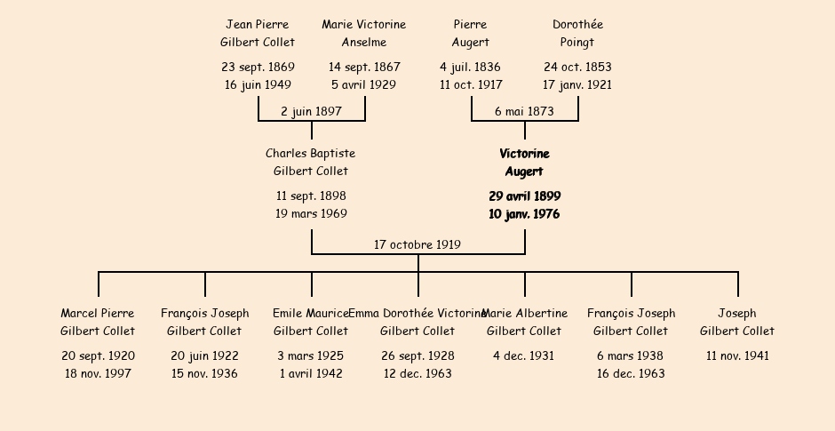 Epouse : Victorine Augert (née à Fontcouverte le 29 avril1899), fille de feu Pierre et de Dorothée Poingt |