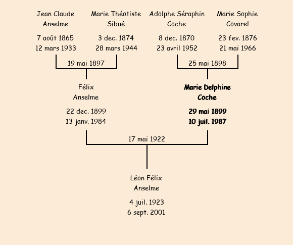 Epoux : Félix Anselme (22 ans, né à Fontcouverte le 22 décembre1899, domicilié à L'Alpettaz), fils de Jean Claude et de Marie Théotiste Sibué |