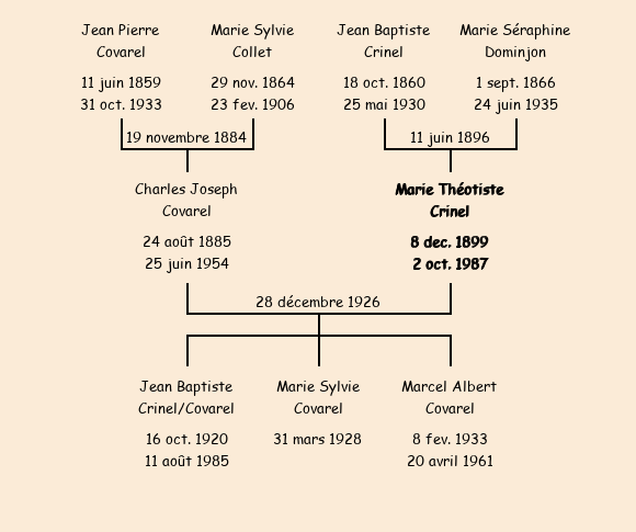 Epouse : Marie Théotiste Crinel (27 ans, née à Fontcouverte le 8 décembre1899, de La Rochette), fille de Jean Baptiste et de Marie Séraphine Dominjon |