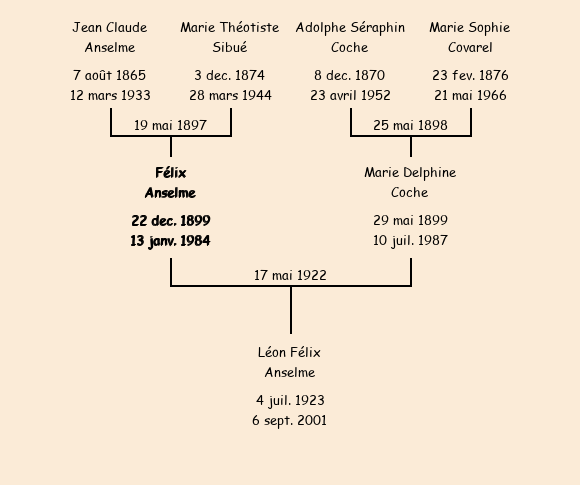 Epoux : Félix Anselme (22 ans, né à Fontcouverte le 22 décembre1899, domicilié à L'Alpettaz), fils de Jean Claude et de Marie Théotiste Sibué |