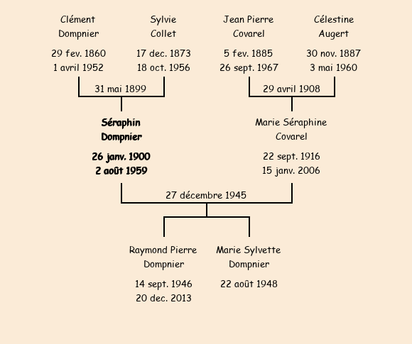 Epoux : Séraphin Dompnier (45 ans, né à Fontcouverte le 26 janvier 1900, domicilié au Chef Lieu), fils de Clément et de Sylvie Collet |