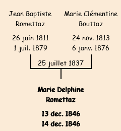 Père : Jean Baptiste Romettaz (laboureur, illétré) | Parrain : Jean Pierre Romettaz (laboureur) |