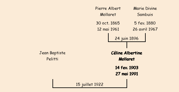 Mariée (19 ans) avec Jean Baptiste Pelitti le 15 juillet 1922 à Moûtiers |