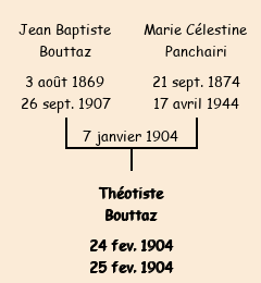 Père : Jean Baptiste Bouttaz (34 ans né et domicilié à la Bise) |