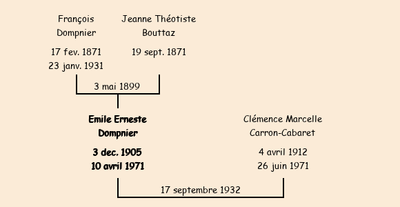 Marié (26 ans) avec Clémence Marcelle Carron-Cabaret (20 ans) le 17 septembre 1932 à Pont-de-Beauvoisin |