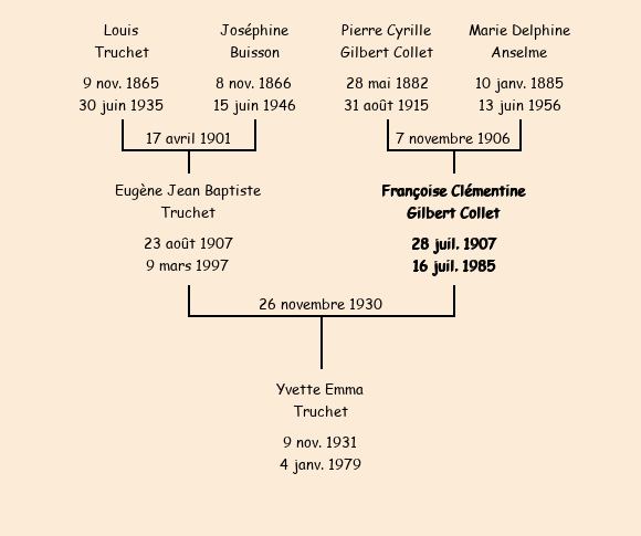 Epoux : Eugène Jean Baptiste Truchet (23 ans, né à Fontcouverte le 2 août1907, domicilié à Vers le Rieux), fils de Louis et de Joséphine Buisson |