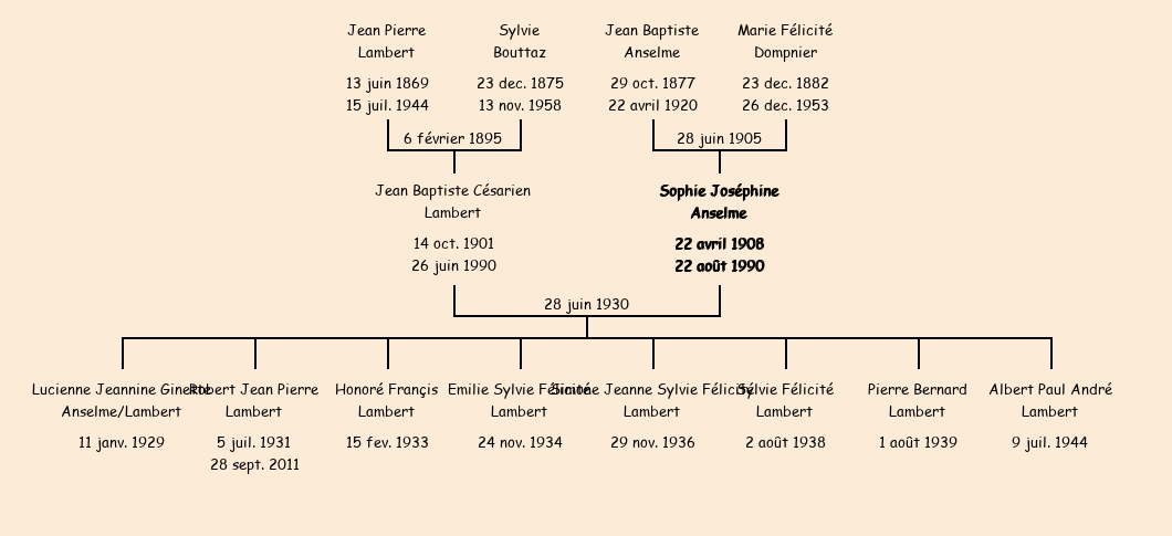Epoux : Jean Baptiste Césarien Lambert (28 ans, né à Fontcouverte le 14 octobre1901, veuf de Ludivine Panchairi), fils de Jean Pierre et de Sylvie Bouttaz |