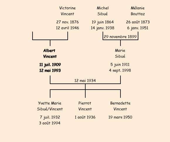 Epouse : Marie Sibué (22 ans, née à Fontcouverte le 5 juin1911, de Réortier Dessus), fille de Michel et de Mélanie Bouttaz |