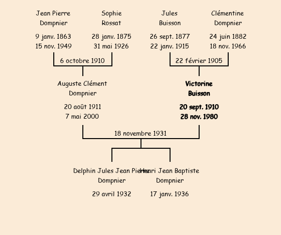 Epouse : Victorine Buisson (21 ans, née à Fontcouverte le 20 septembre1910), fille de feu Jules et de Clémentine Dompnier |