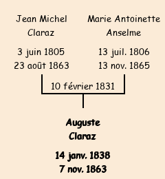 Père : Jean Michel Claraz (en périgrination en France dans le Maconnais) | Parrain : - |