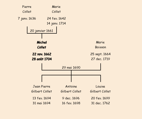 Mère : Marie | Marraine : Philippine Collet (fille du même Michel) |