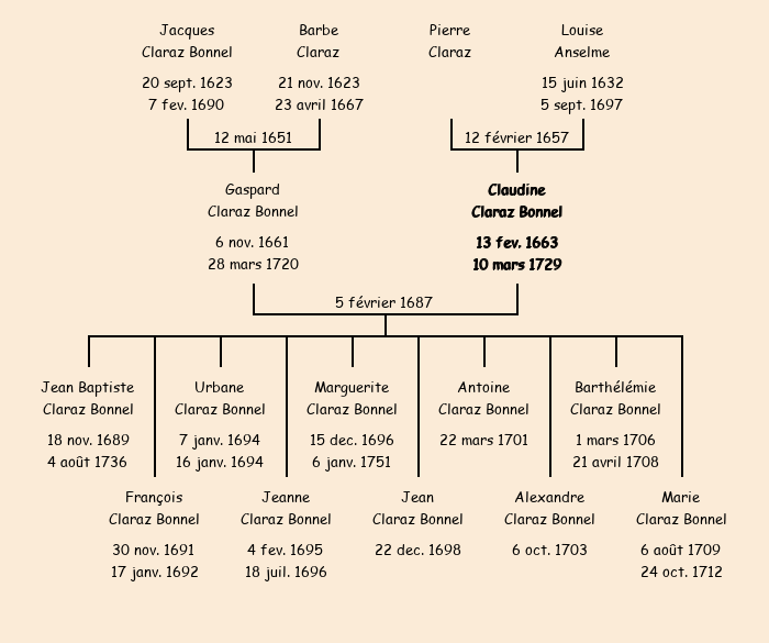 Père : Pierre Claraz Bonnel | Parrain : Claude Anselme (fils de Jean) |