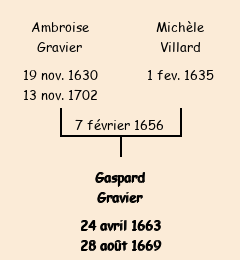 Père : Ambroise Gravier | Parrain : Gaspard Taravel (fils de Claude) |