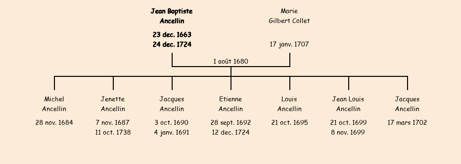 Jean Baptiste Ancellin apparait dans la consigne des mâles de 1713. |