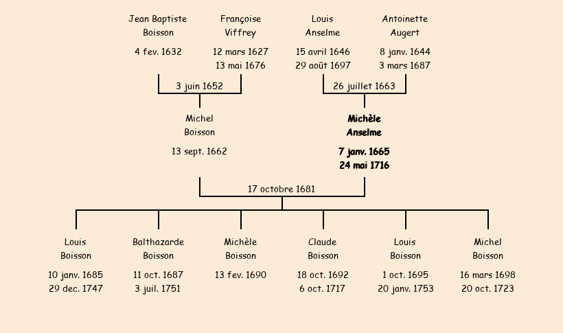 Mariée (16 ans) avec Michel Boisson (19 ans) le 17 octobre 1681 à Fontcouverte ![]() |