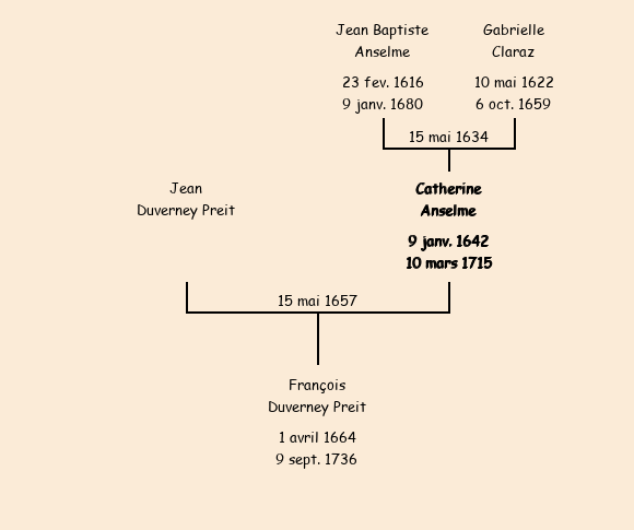 Mariée (15 ans) avec Jean Duverney Preit le 15 mai 1657 à Villarembert |