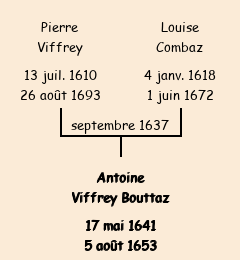 Père : Pierre Viffrey Bouttaz | Parrain : Antoine Viffrey Bouttaz (fils de Guillaume décédé) |