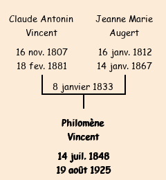 Philomène Vincent apparait dans le dénombrement de la population de 1881. |