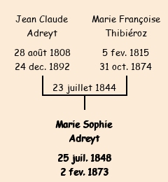 Mère : Marie Françoise Thibiéroz (ménagère) | Marraine : Clémentine Adreyt (laboureur) |