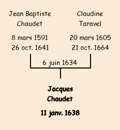 Père : Jean Baptiste Chaudet (le jeune) | Parrain : Jacques Chaudet (fils naturel) |