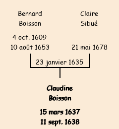 Mère : Claire | Marraine : Claudine Boisson (fille du parrain) |