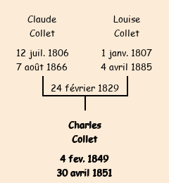 Mère : Louise Gilbert Collet (ménagère) | Marraine : Marie Sophie Gilbert Collet (laboureur) |