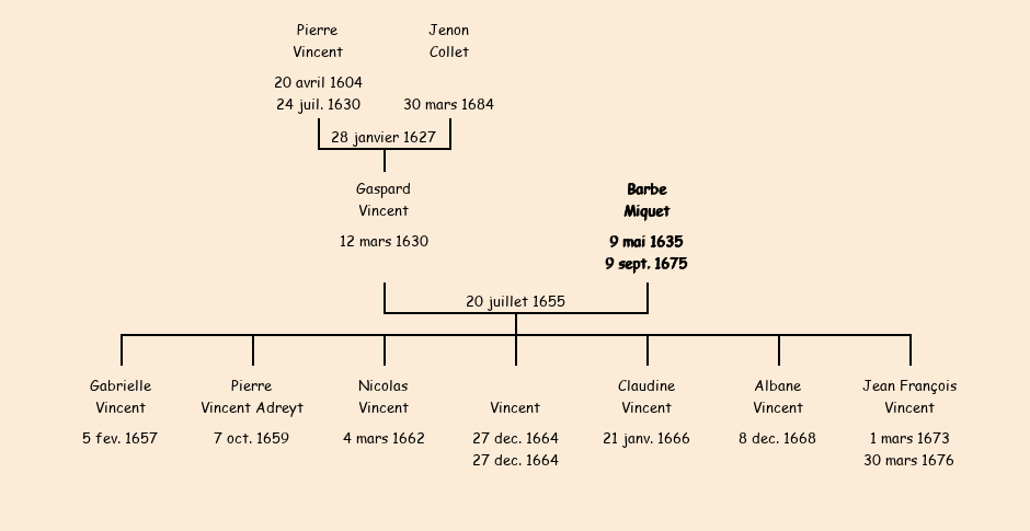 Epouse : Barbe Miquet, fille de Louis |