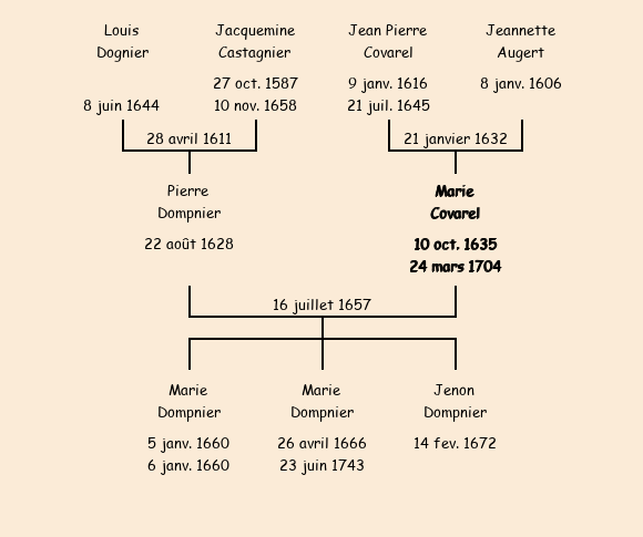 Mariée (21 ans) avec Pierre Dompnier (28 ans) le 16 juillet 1657 à Fontcouverte ![]() |
