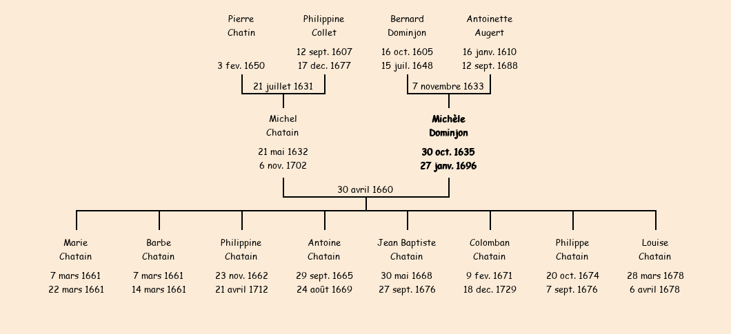 Mariée (24 ans) avec Michel Chatain (27 ans) le 30 avril 1660 à Fontcouverte ![]() |