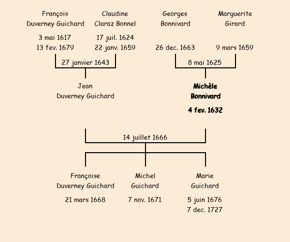 Mariée (34 ans) avec Jean Duverney Guichard le 14 juillet 1666 à Fontcouverte ![]() |