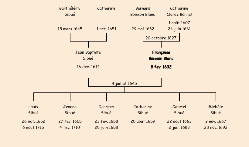 Mariée (13 ans) avec Jean Baptiste Sibué (30 ans) le 4 juillet 1645 à Fontcouverte ![]() |