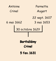Père : Antoine Crinel | Parrain : Barthélémy Crinel (fils de Laurent) |