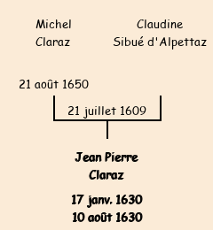 Père : Michel Claraz | Parrain : Jean Pierre Taravel (fils de Jean décédé) |